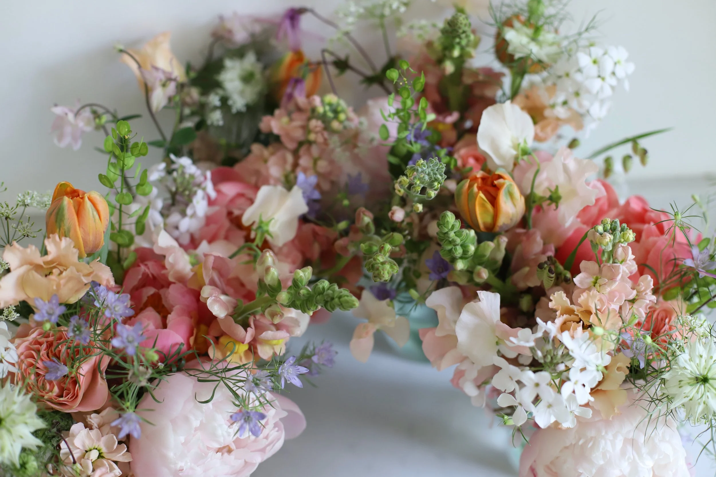 Pastels are pretty at any time of year but Spring is just perfect for them - but bringing in a brighter coral tone helps to elevate them and create a bit more fun in your flower scheme.